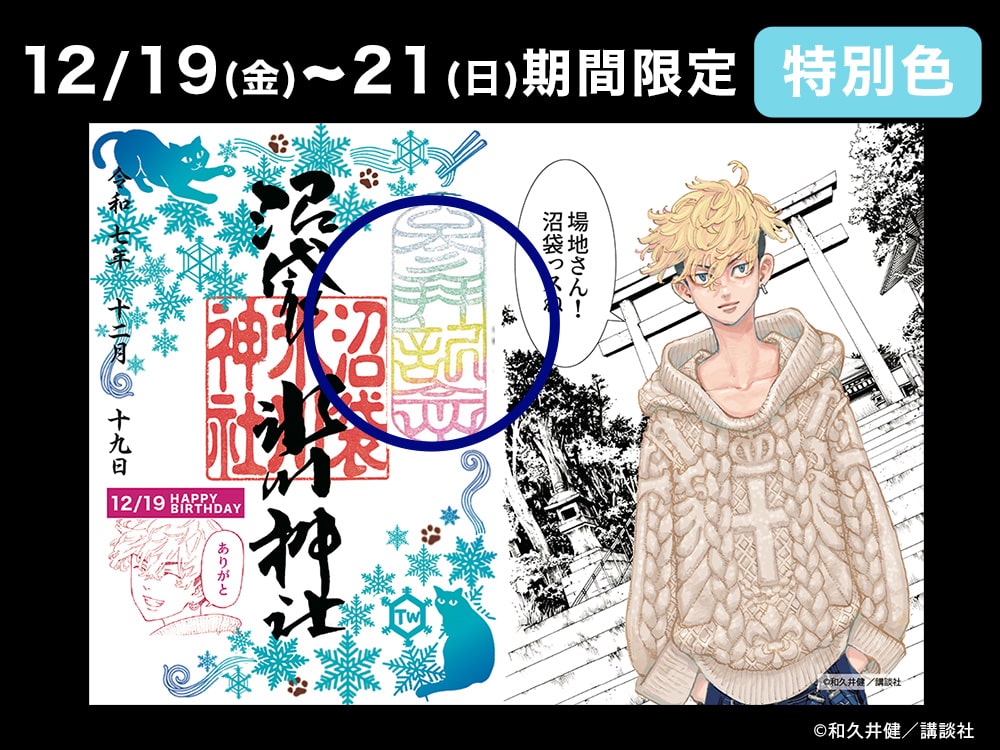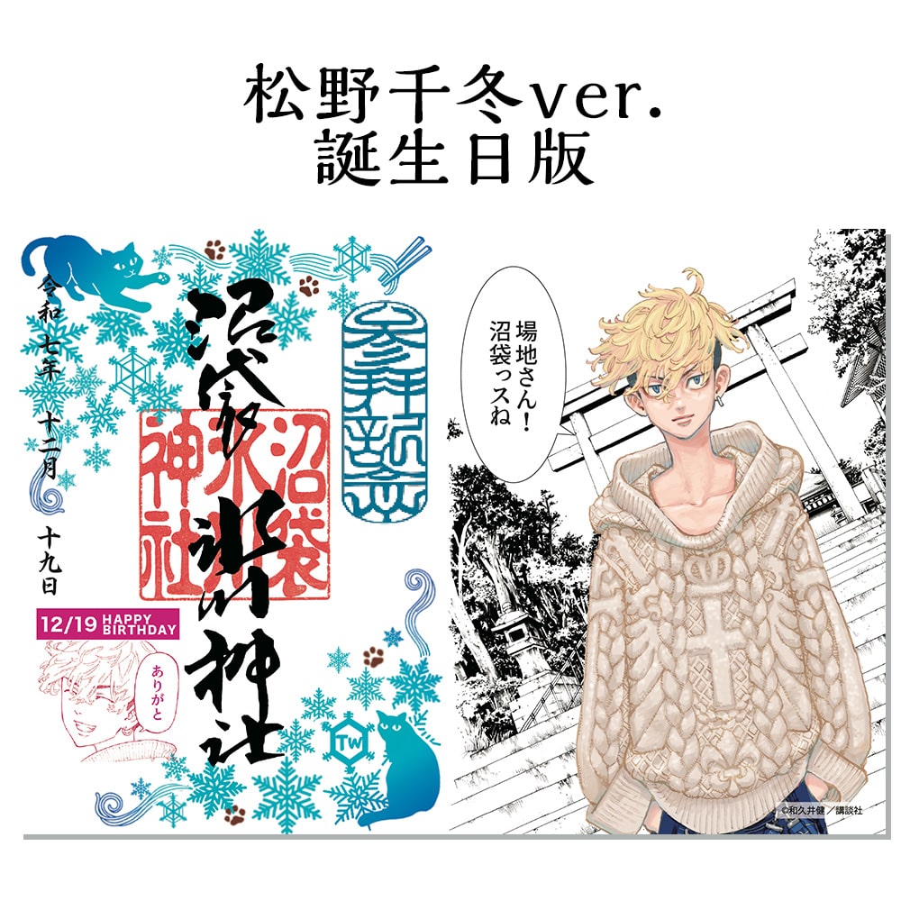 漫画『東京卍リベンジャーズ』内で、当社がモデルとなったシーンに登場するキャラクターの中から、ゆかりのあるキャラクターをピックアップし、誕生日を記念した御朱印を頒布予定です。