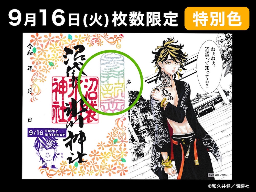 中野沼袋氷川神社では、漫画『東京卍リベンジャーズ』(©和久井健/講談社)とコラボレーションした御朱印を2025年9月11日(木)より数量限定で頒布致します。 (郵送申込は9/9から受付)